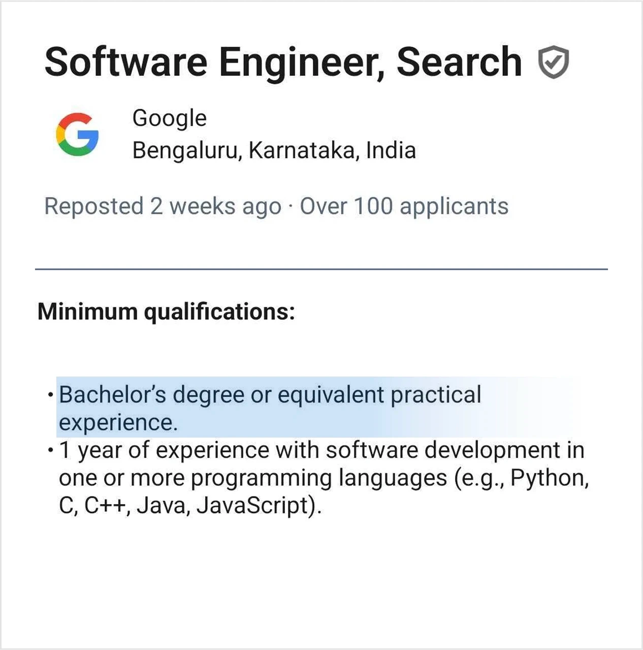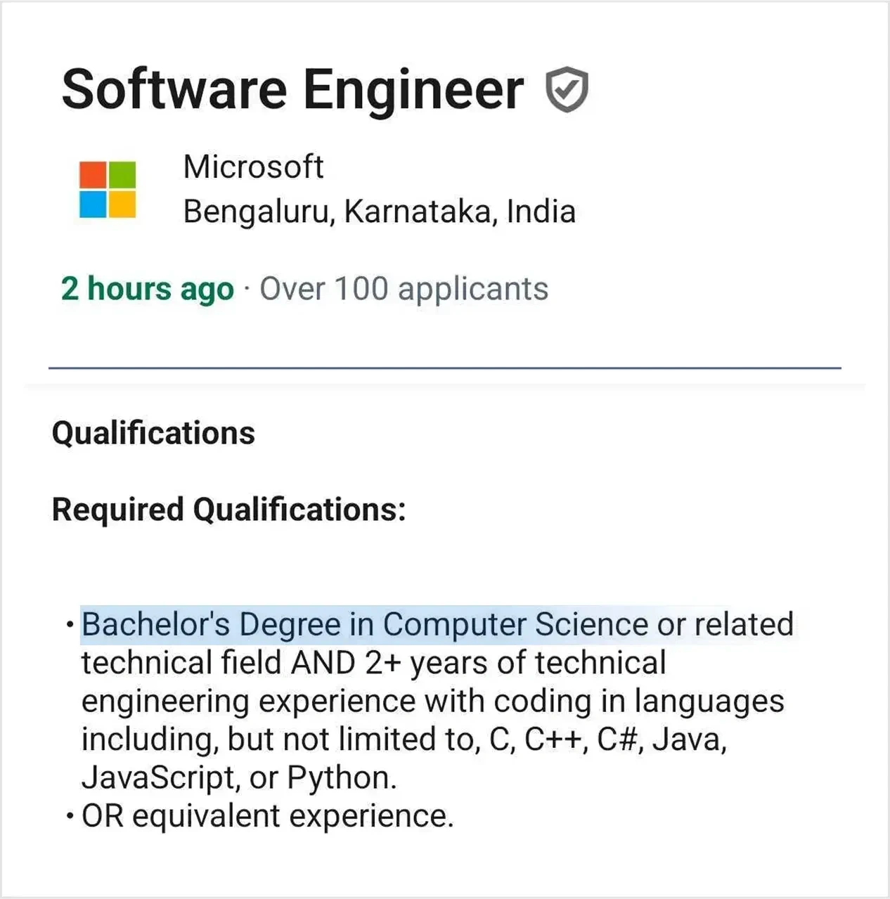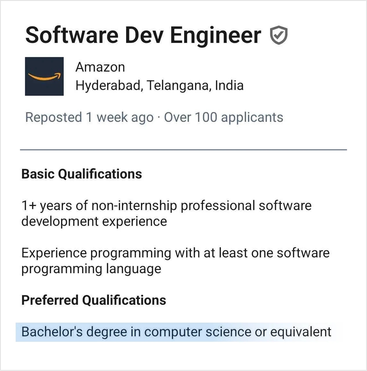 Almost all tech companies only require a "Bachelor's degree in CS or equivalent" and not specifically a "BTech". The tech industry values practical skills over degrees. Our 4 year program equips you with the in-demand technical and soft skills to excel in tech careers.